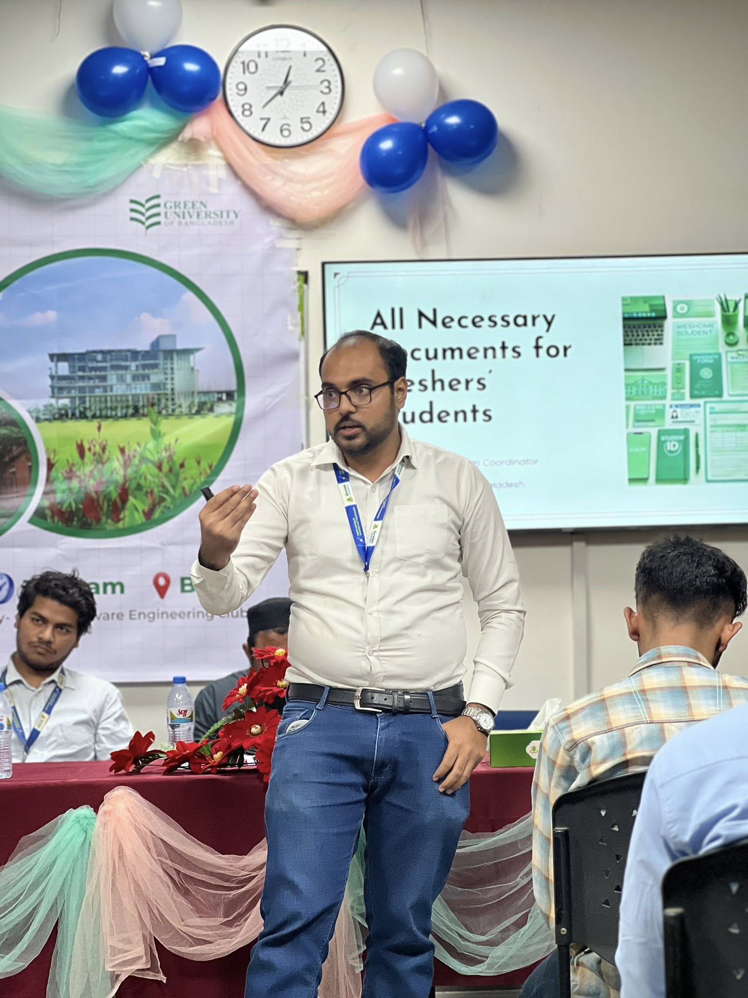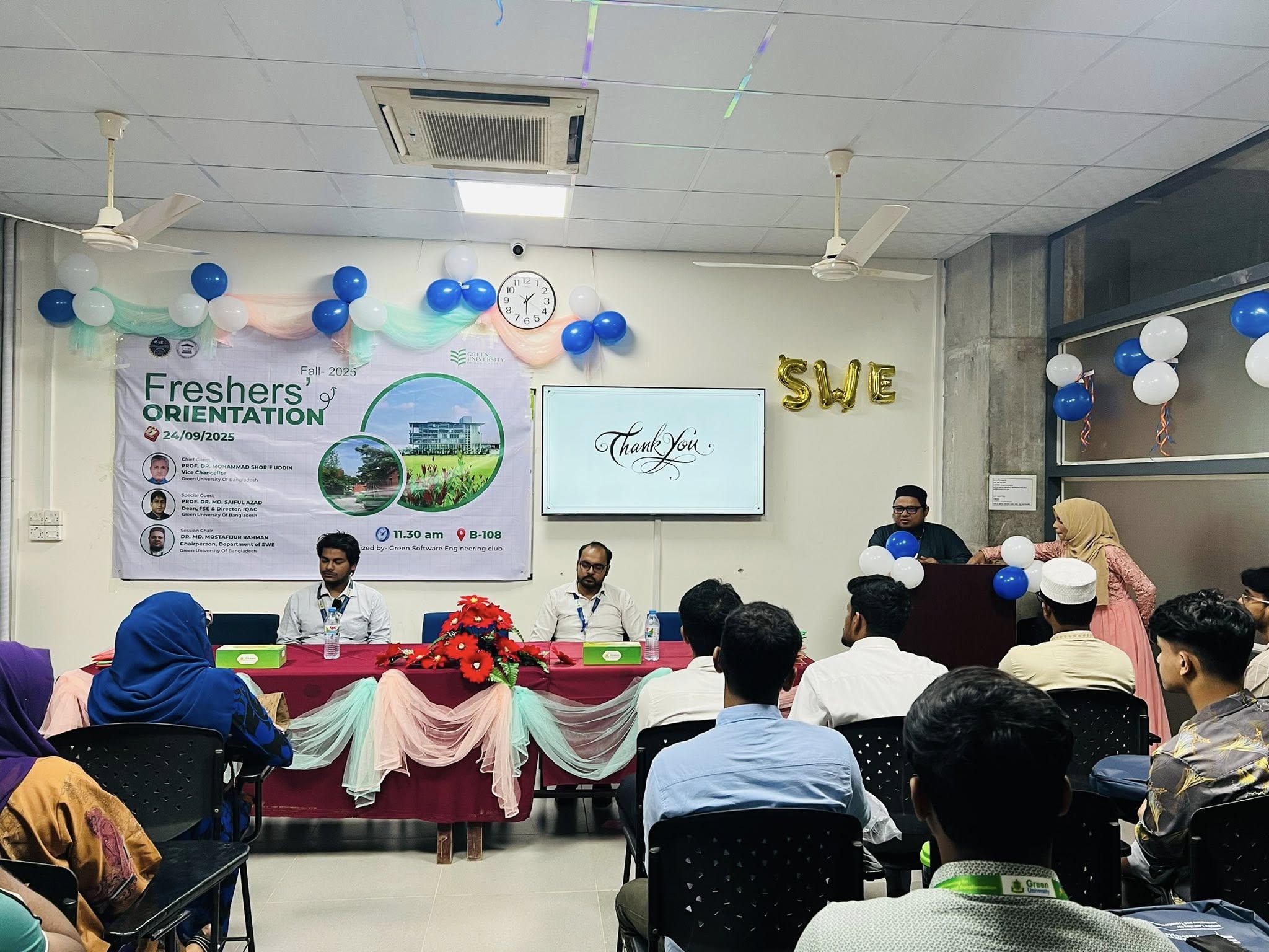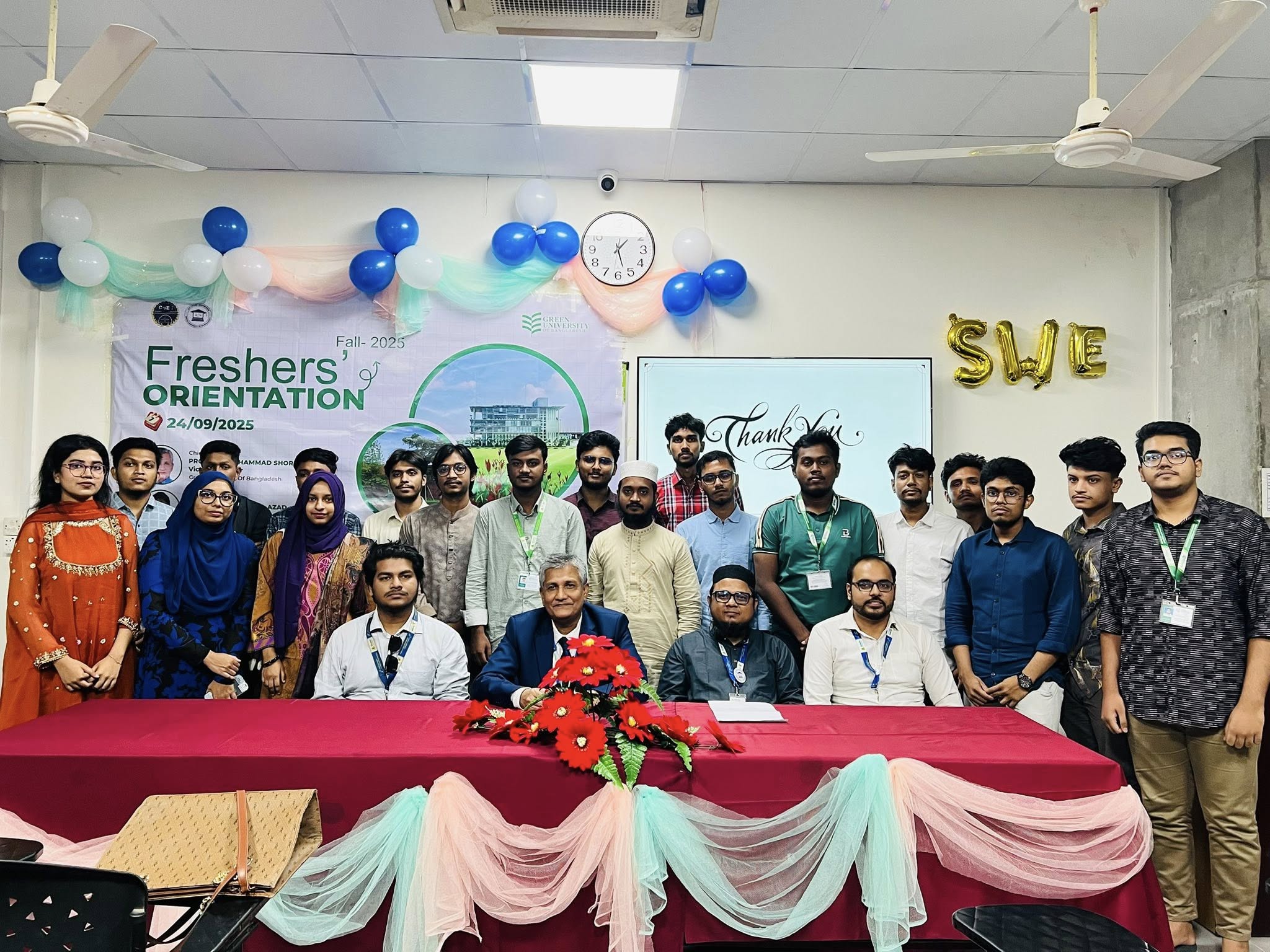 Finally, Dr. Md. Mostafijur Rahman (Chairperson, SWE) delivered a gracious and appreciative closing speech, thanking all participants, speakers, and organizers. His encouraging words left students feeling motivated and prepared to start their journey at Green University of Bangladesh.