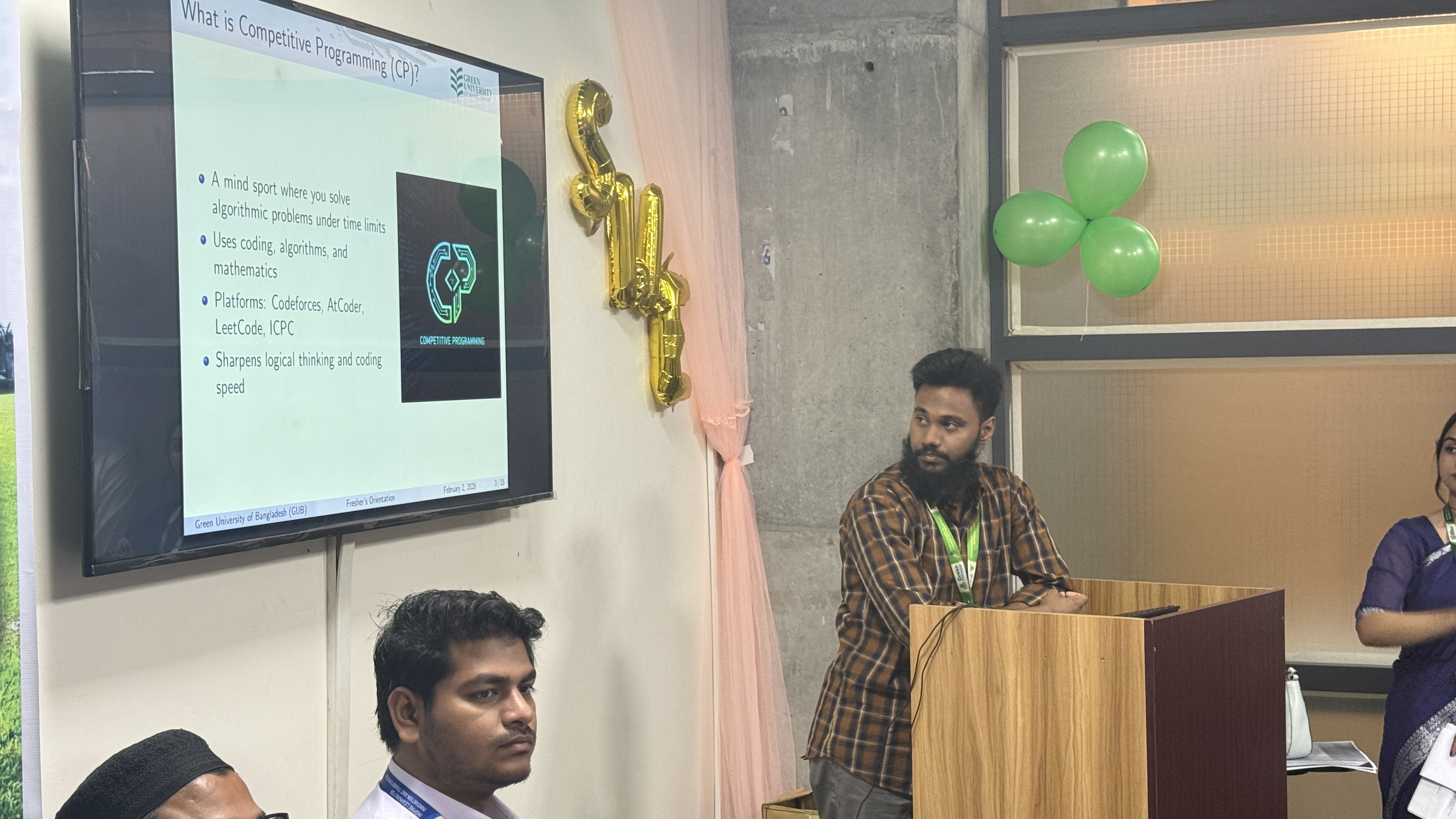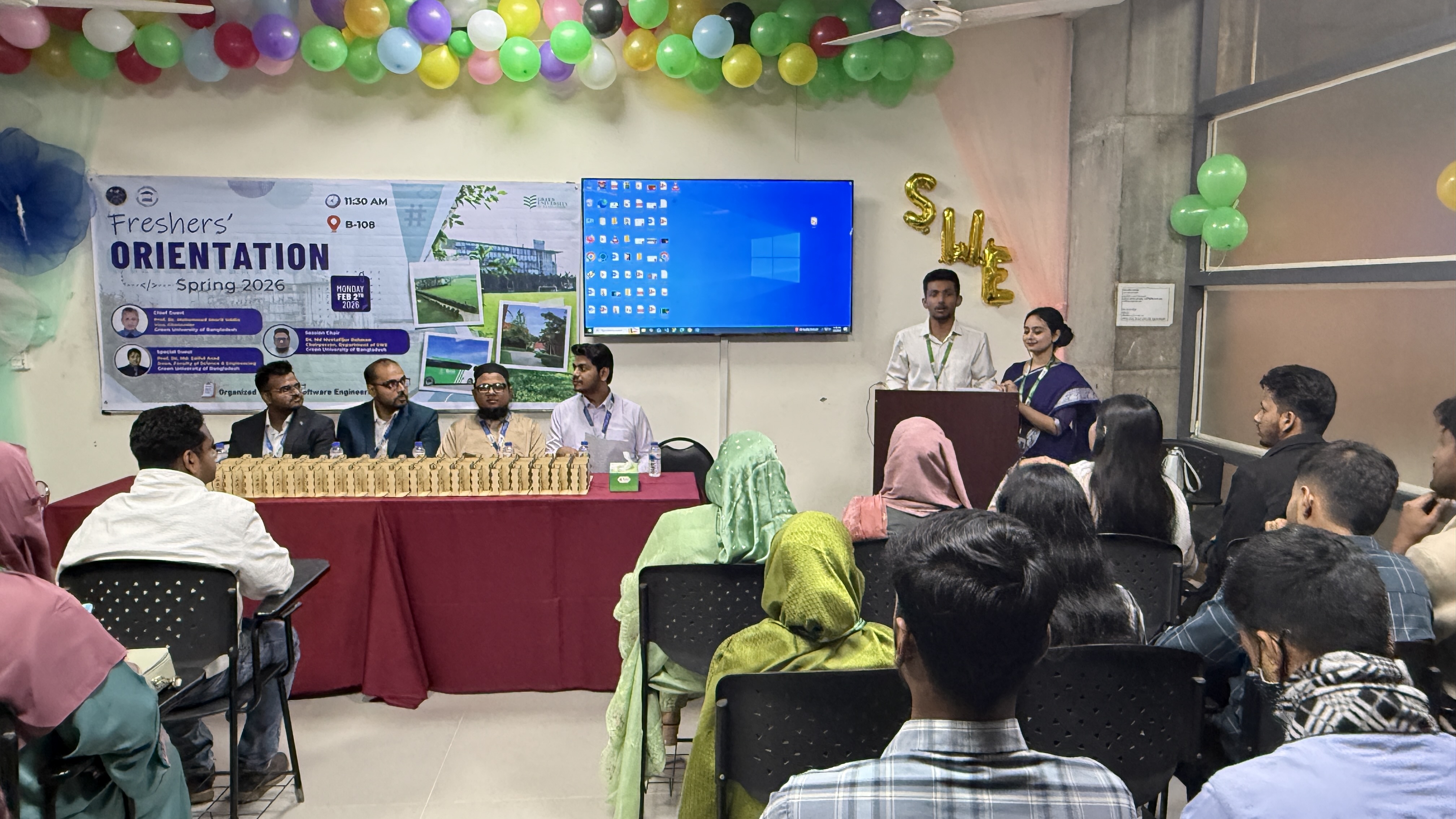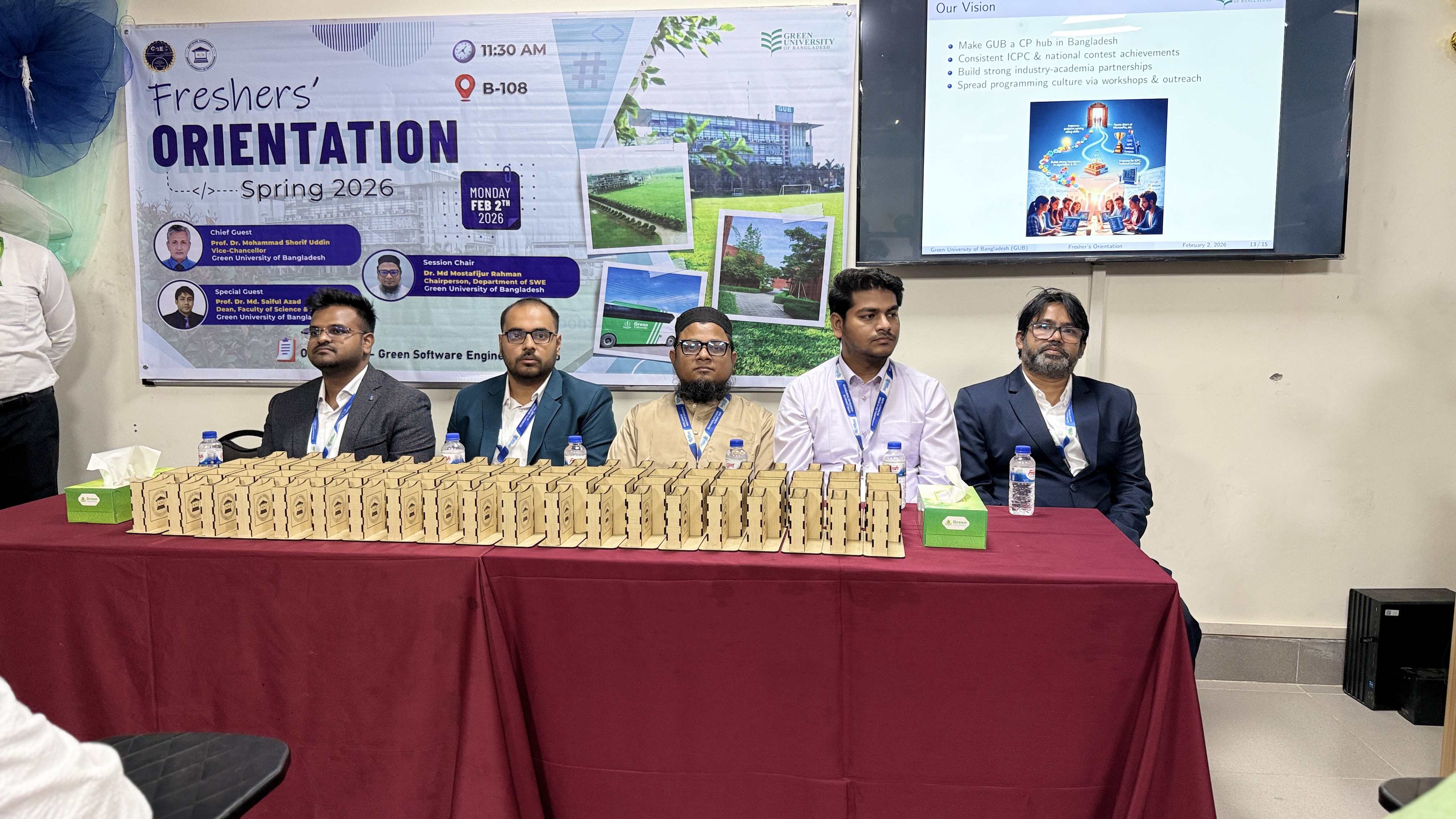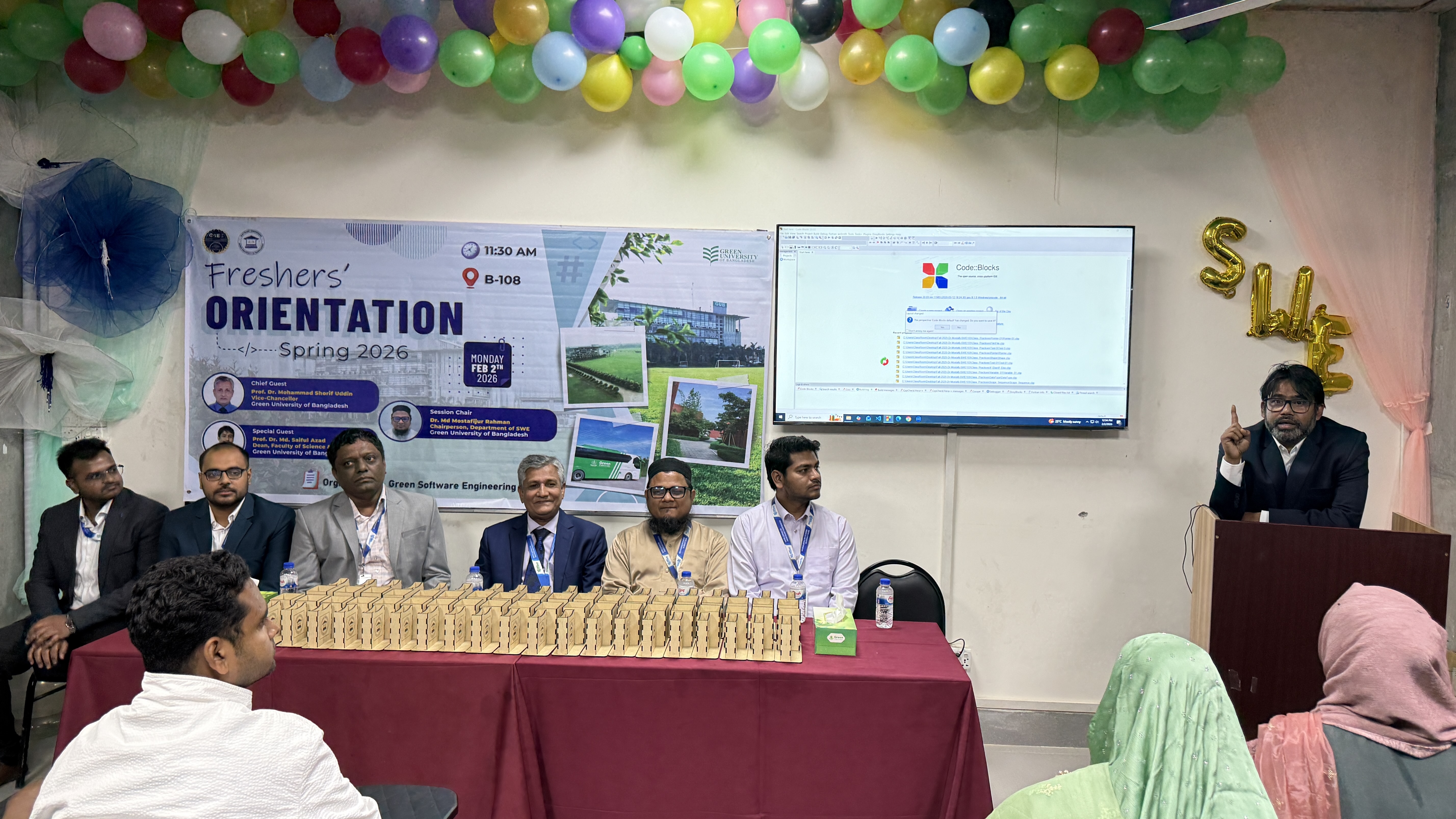 The Department of Software Engineering (SWE), Green University of Bangladesh, successfully organized the Freshers’ Orientation Program Spring 2026 on February 2, 2026, at 11:30 AM in Room B-108. The program was arranged by the Green Software Engineering Club to warmly welcome the newly admitted students of the Spring 2026 semester and introduce them to the department’s academic culture, values, and support systems.
