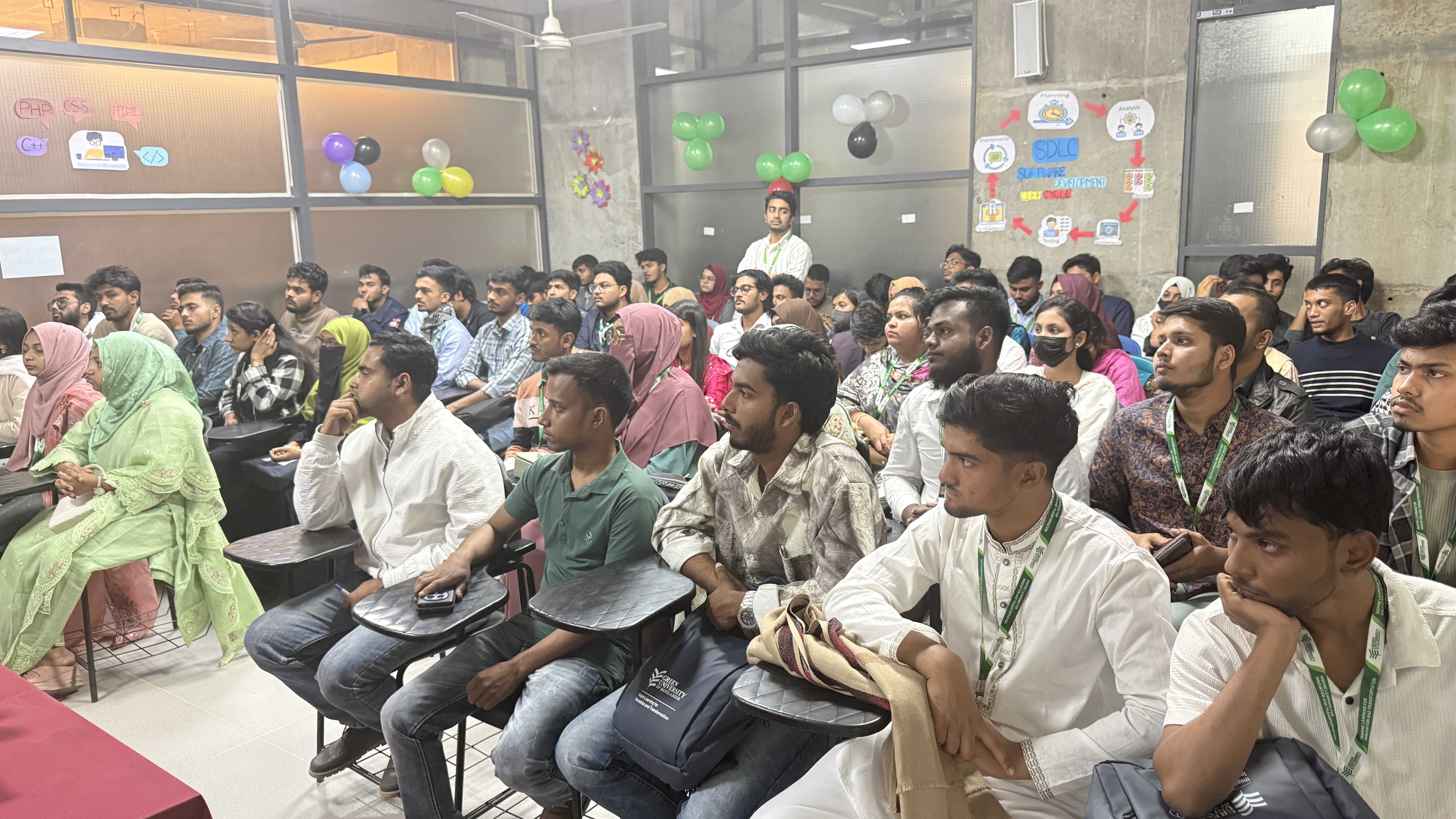 A documentary video highlighting the Department of Software Engineering was then presented by Md. Adil Hossain (Batch 251). The video showcased the department’s academic achievements, learning environment, student activities, and notable milestones. Subsequently, Sapnil Shahriar Suad (Batch 251) introduced the esteemed faculty members of the department along with the club members.