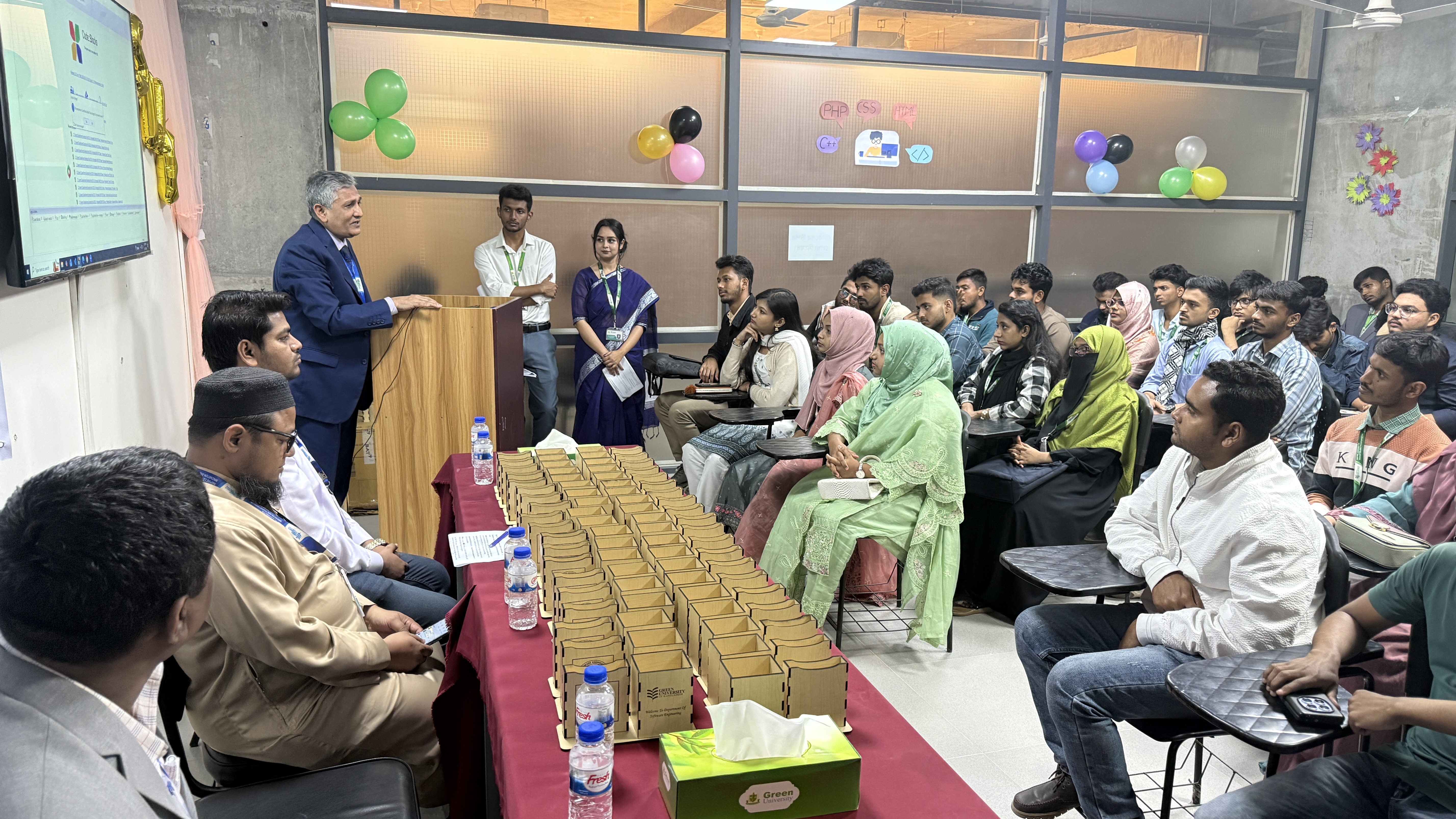 The event was honored by the presence of Prof. Dr. Md. Saiful Azad, Dean of the Faculty of Science and Engineering, as the Special Guest. In his address, he encouraged students to focus on three essential principles: setting clear goals, assessing their determination to achieve them, and understanding the sacrifices required for success. He also shared perspectives on emerging technologies and how rapid technological advancements are reshaping various industries.