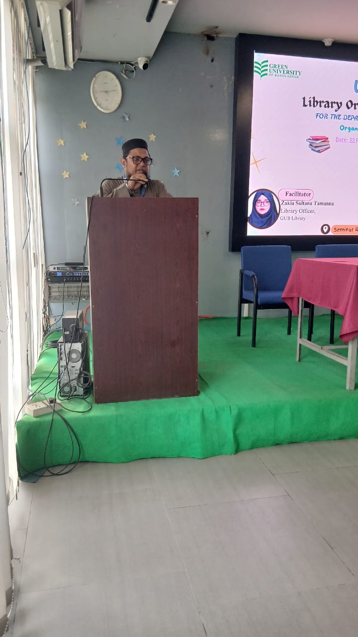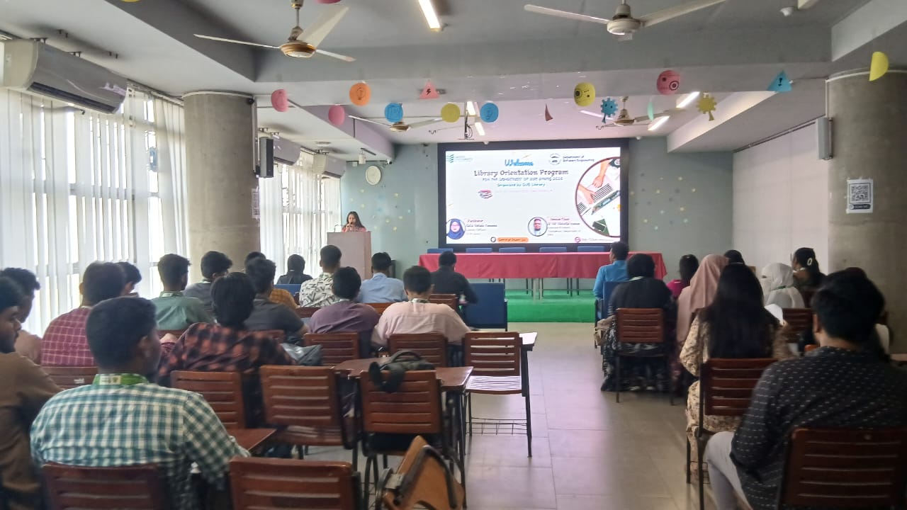 The session was further enriched by a brief address from Dr. Md. Mostafijur Rahman, Chairperson of the Department of Software Engineering. He highlighted the diverse services offered by the library and encouraged students to regularly utilize its resources to enhance their academic performance and overall development.